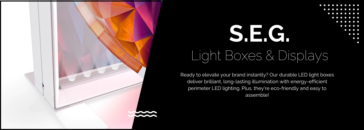 Elevate your displays with Punch Visuals! Our stunning solutions—whether wall-mounted, freestanding, or ceiling-suspended—captivate any audience. Enjoy the flexibility of quick graphic changes for promotions, sales, or fresh announcements. Want to make a bigger impact? Choose large SEG fabric for an immersive, evolving visual experience!